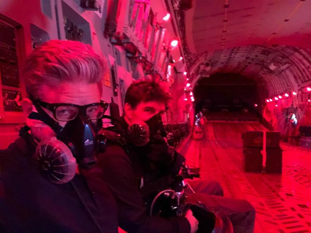 Oltre alla fotografia della prodezza di Tom Cruise, ve ne mostriamo una condivisa da McQuarrie (su Instagram) in cui regista e attore sono a bordo dell’aereo poco prima del "volo" di Tom. Questo il commento di Christopher: "Ricordate, ragazzi, siamo dei professionisti".