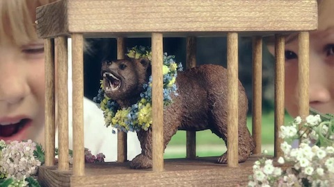 Midsommar: l'orso in gabbia del film horror diventa un giocattolo in un video promozionale