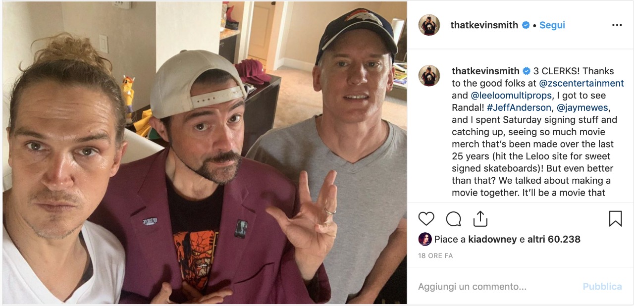 Kevin Smith tornerà presto a mettere le mani sulla saga indie Clerks, scorretta e nerdissima. Per un paio di volte aveva illuso negli anni i fan con un tiro e molla, sfogliando la margherita con estenuanti: ‘lo faccio, no, non lo faccio’. Questa volta fa sul serio, davvero, anche perché altrimenti ci perderebbe la faccia e lo inseguiremmo a casa. Si farà, quindi, Clerks 3, a 25 anni dall’uscita in sala del film originale. Ne ha parlato sui social (dove altrimenti?), raccontando di un incontro con Jeff Anderson, il Randal protagonista dei primi due film.