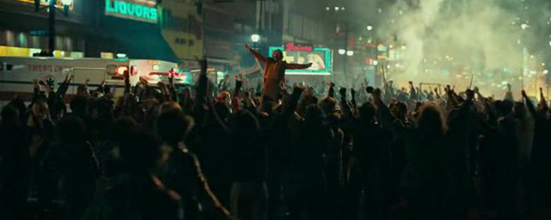 92° minuto. Inseguito dai due detective Burke e Garrity, Arthur si mescola tra la folla che sta andando a manifestare. Il treno della metro su cui sale è al binario numero 6.