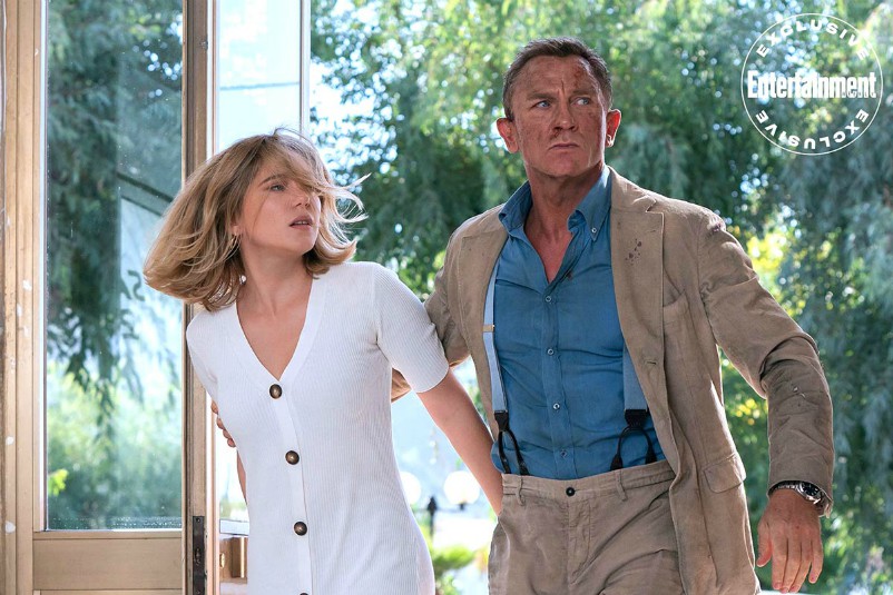 Un James Bond elegante ma un po’ sgualcito, due Bond girl in bianco, il cattivo di Rami Malek e Jeffrey Wright super cool.